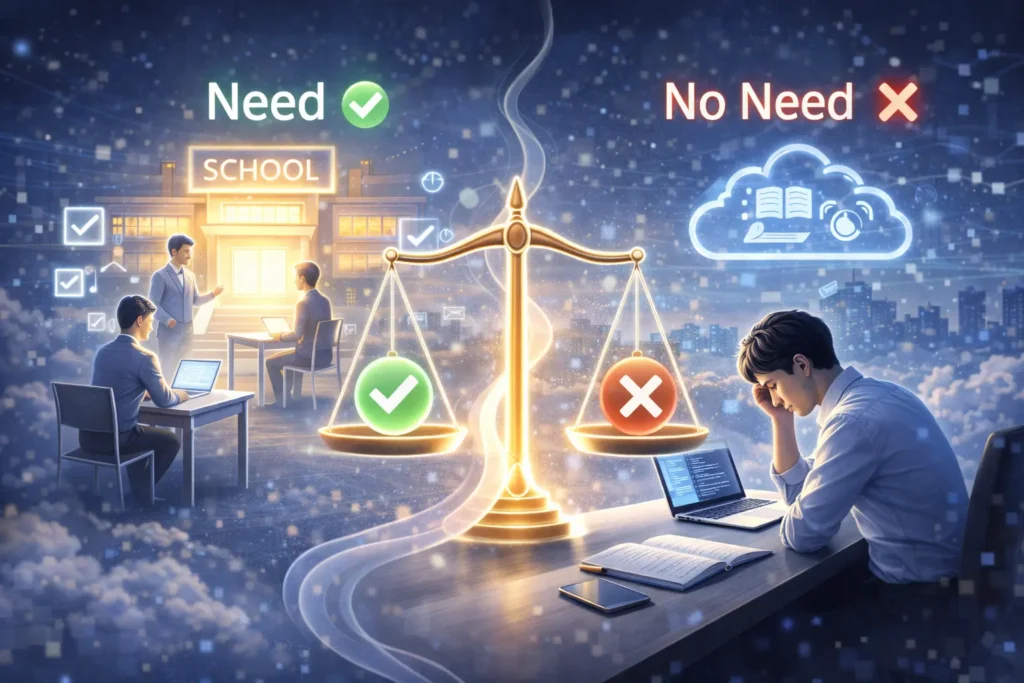 次の章では、スクールが向いている人/独学で十分な人の違いを、感情ではなく判断軸で整理します。
