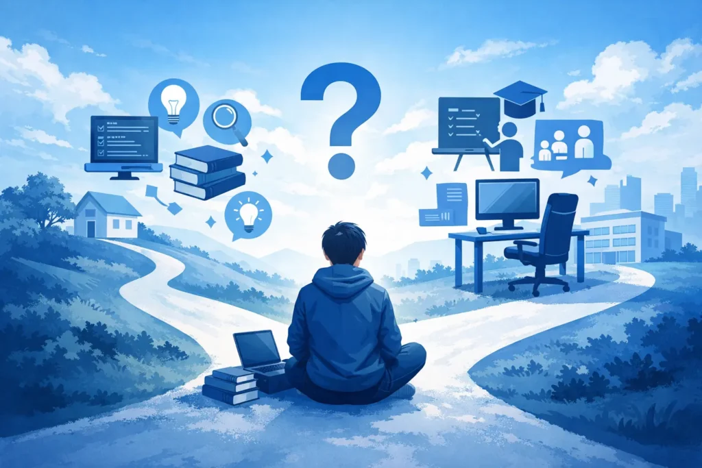 独学かスクールかで悩む人ほど、最後にもう一度迷います。