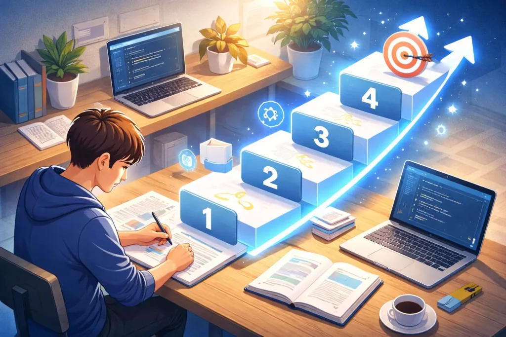 次の章では、独学を選ぶ人向けに“順番が9割”のロードマップを、そのまま使える形で整理します。