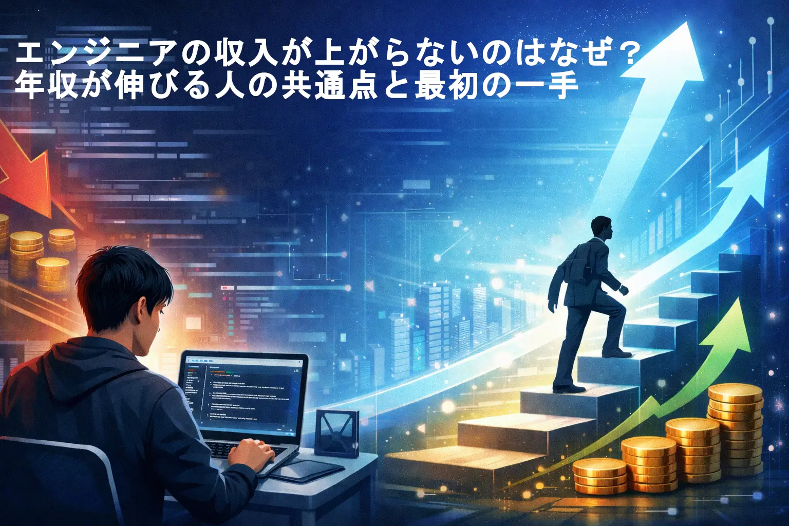 「エンジニアになったのに、思ったより収入が増えない…」そんな不安を抱えていませんか。同期やSNSの年収報告を見て焦ったり、毎日頑張っているのに評価されない気がしたりすると、気持ちが沈むのも当然です。僕も未経験で現場に入った頃、昇給額の小ささにショックを受け、「このままで大丈夫?」と何度も立ち止まりました。