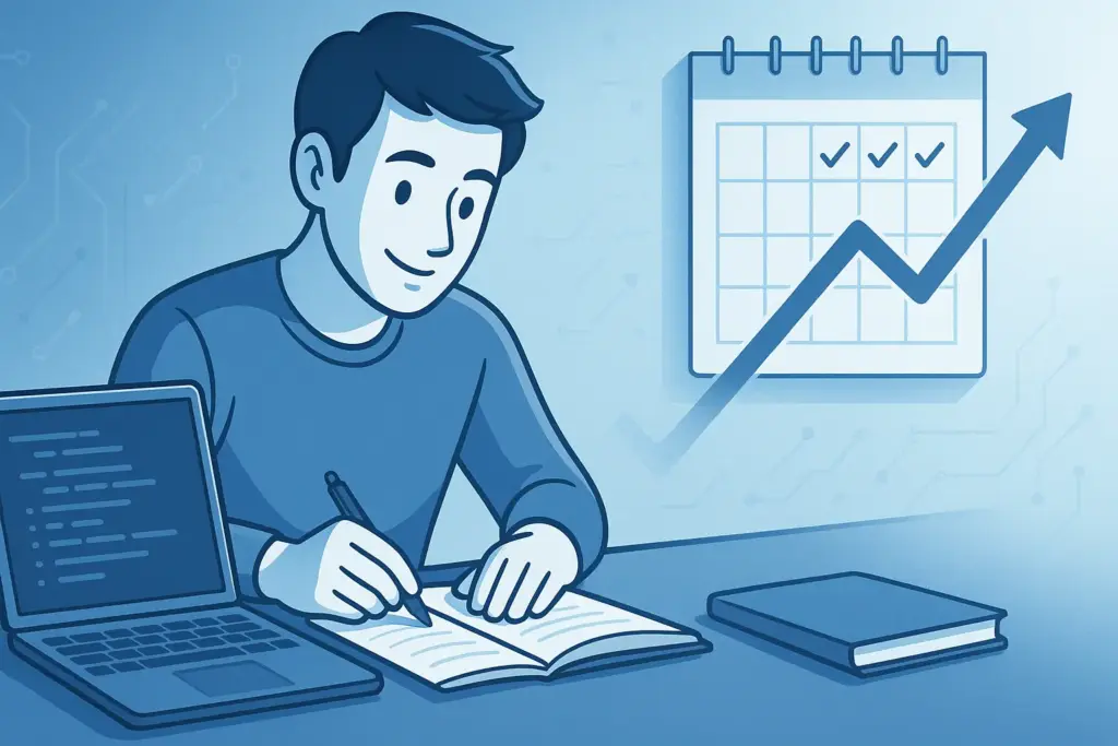 また、学習の前後に「スイッチとなる行動」を決めておくのもおすすめです。勉強前にコーヒーを入れる、特定の音楽をかける、机の上を整える。こうした行動を毎回同じようにすることで、脳が「これからITエンジニアの勉強をする時間だ」と認識しやすくなります。モチベーションに頼らず、自然と勉強モードに入れる工夫をしていきましょう。