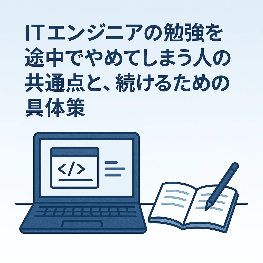 この記事では、ITエンジニアの勉強を途中でやめてしまう人に見られる典型的な共通点を整理しながら、そこから抜け出すための具体的な続け方の工夫を解説します。目標設定の仕方、学習の進め方、モチベーションが落ちたときの対処法、習慣化のコツなど、今日から実践できるポイントを分かりやすく紹介していきます。「また途中でやめてしまうかも」という不安を、「今度こそ続けられそうだ」に変えたい方は、ぜひこのまま読み進めてみてください。
