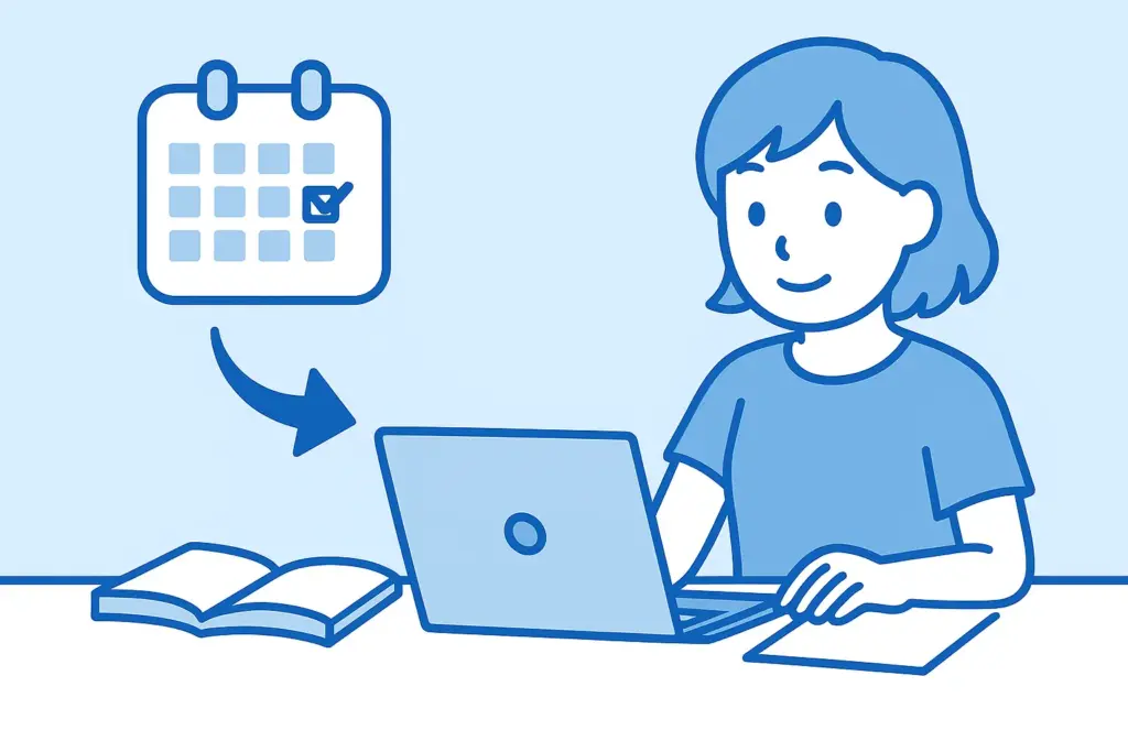 継続のために最も重要なのは、「学習を特別なイベントではなく日常の一部にすること」です。やる気に頼るのではなく、時間と場所を固定してしまうと、勉強を始めるハードルが一気に下がります。たとえば、平日の夜は夕食後に30分、休日は午前中に1時間だけ、といったように、あらかじめ枠を決めてしまうイメージです。